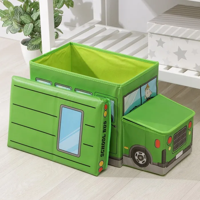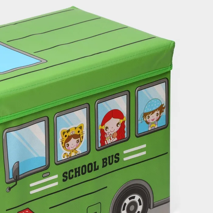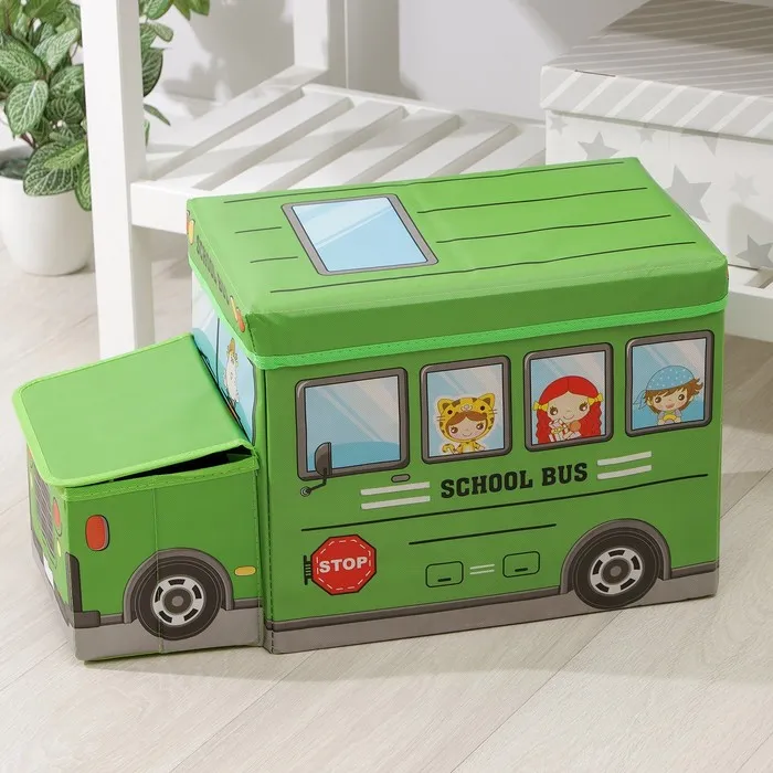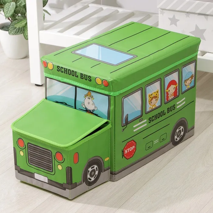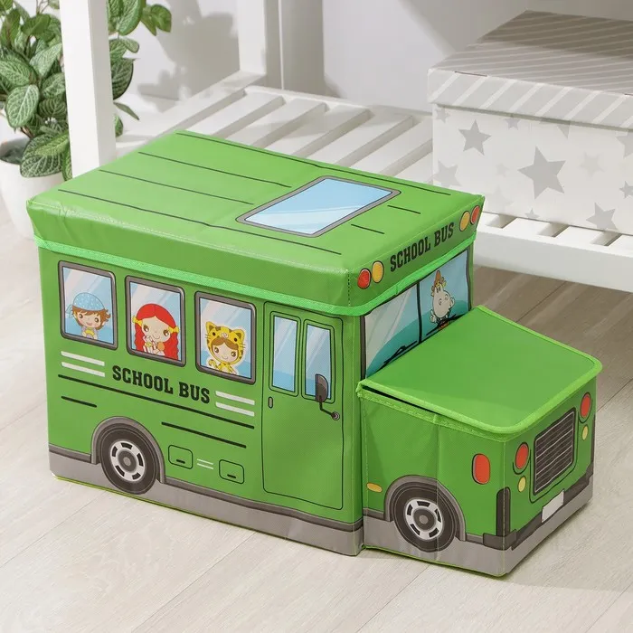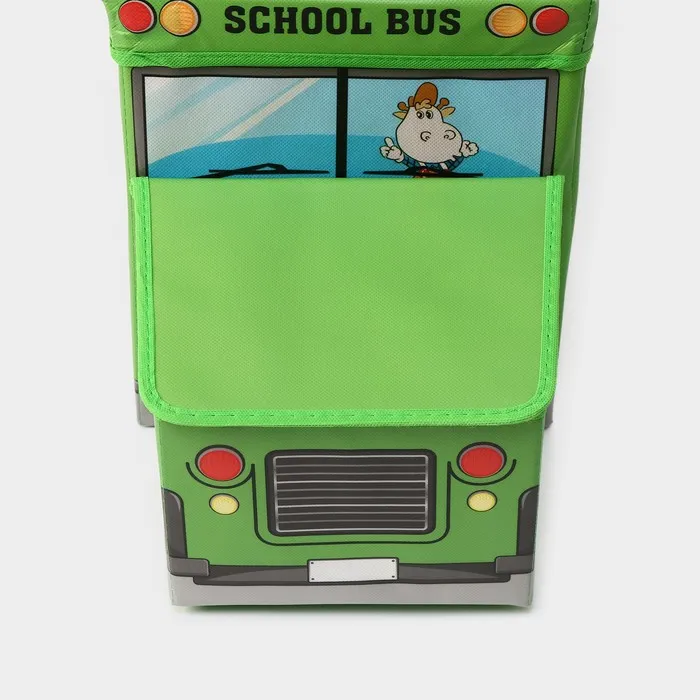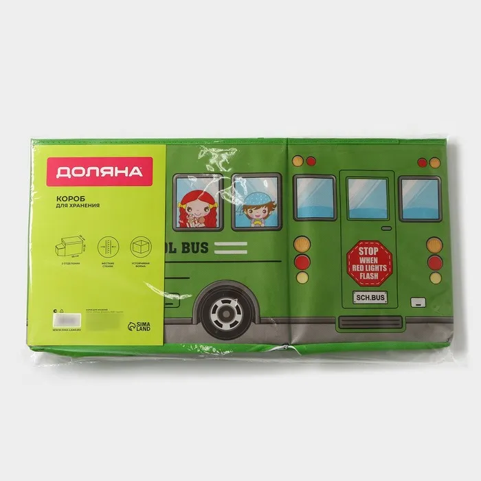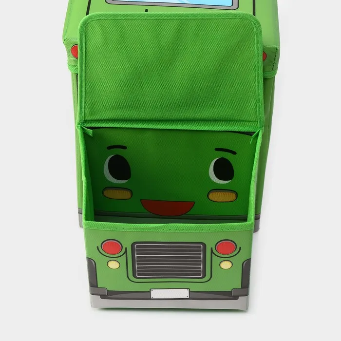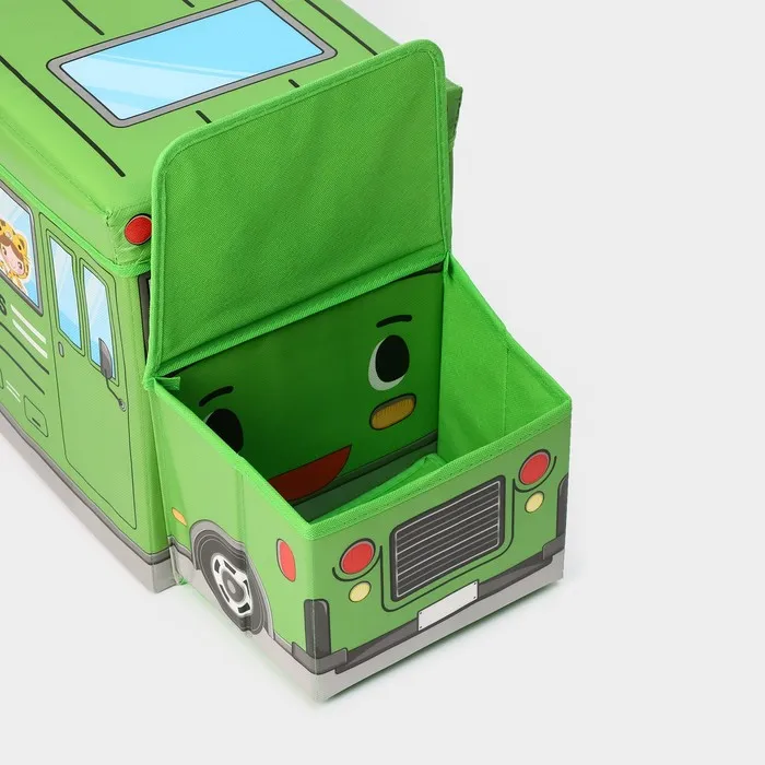 Короб стеллажный для хранения с крышкой Доляна «Школьный автобус», 55×26×32 см, 2 отделения, зелёный — Характеристики