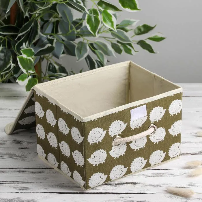 Короб стеллажный для хранения с крышкой «Ёжики», 25×20×17 см, зелёный — Характеристики
