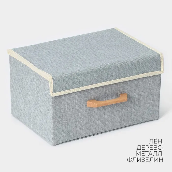 Короб стеллажный для хранения с крышкой LaDо́m «Франческа», 33×24×18 см, цвет серо-голубой