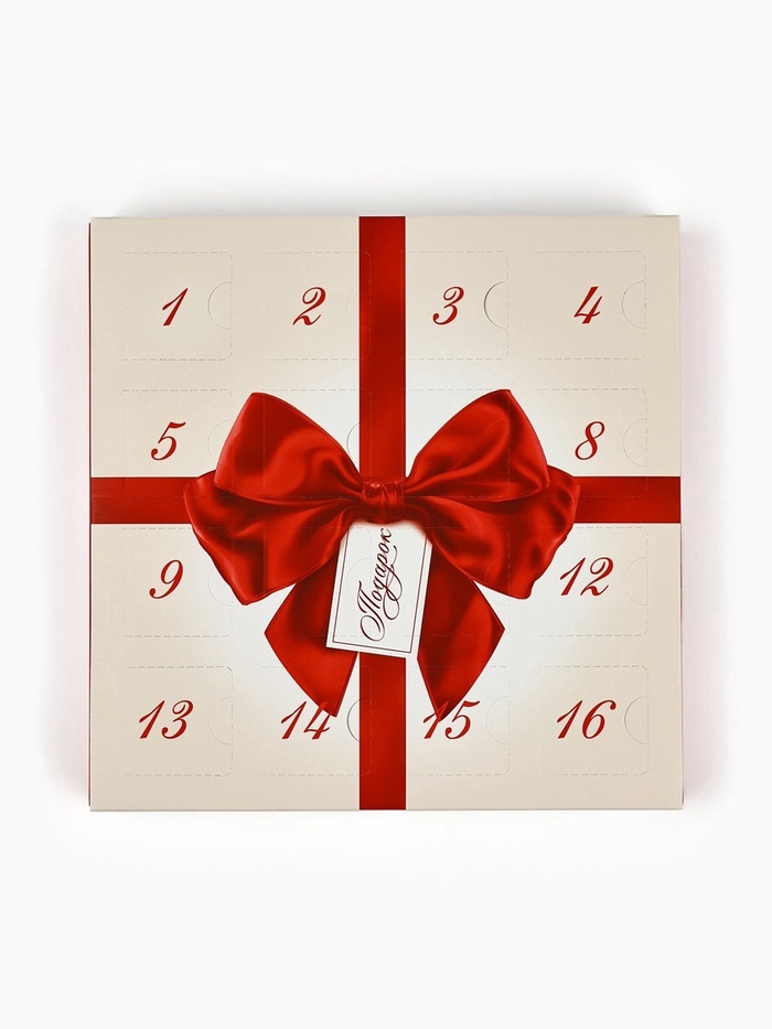 Коробка-адвент под 16 конфет, «Бант», 19 х 19 х 2.5 см, кондитерская упаковка — Характеристики