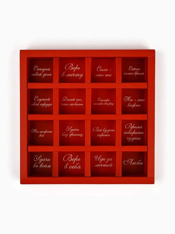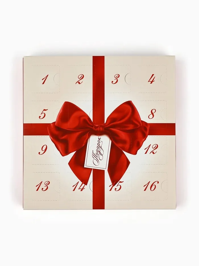 Коробка-адвент под 16 конфет, «Бант», 19 х 19 х 2.5 см, кондитерская упаковка — Характеристики