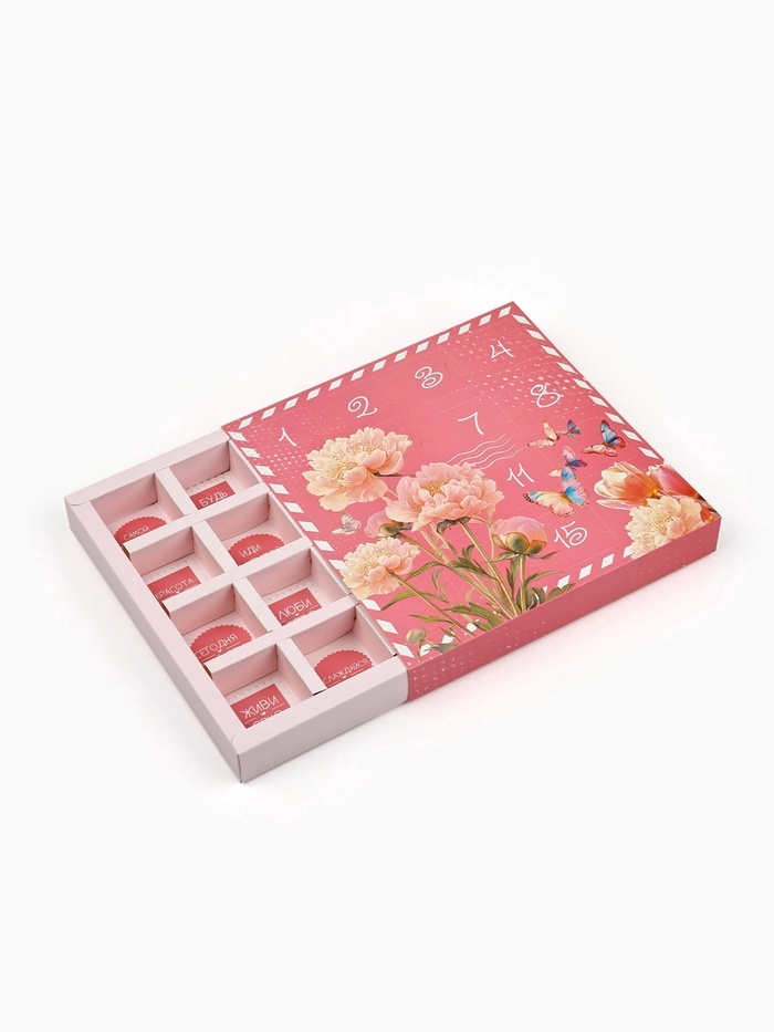 Коробка-адвент под 16 конфет, «Цветочная почта», 19 х 19 х 2.5 см, кондитерская упаковка — Характеристики