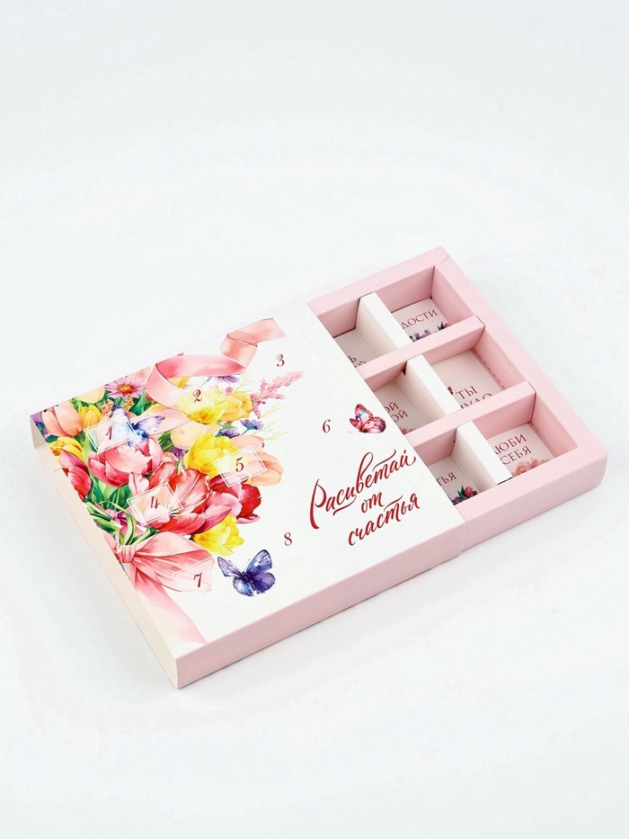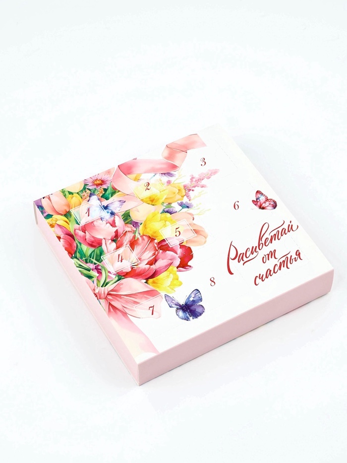 Коробка-адвент под 9 конфет, «Расцветай», 14.5 х 14.5 х 2.5 см, кондитерская упаковка — Характеристики