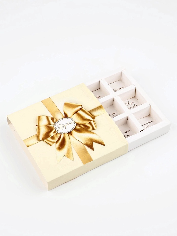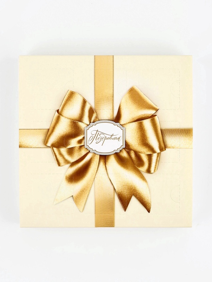 Коробка-адвент под 9 конфет, «Золотой бант», 14.5 х 14.5 х 2.5 см, кондитерская упаковка — Характеристики