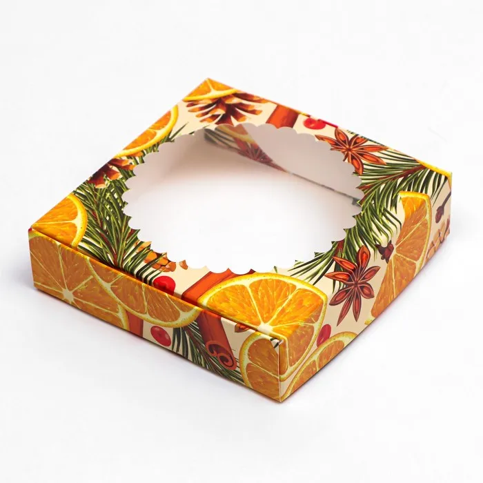 Коробка новогодняя с окном — идеальный выбор для упаковки десертов, сувениров и подарков.