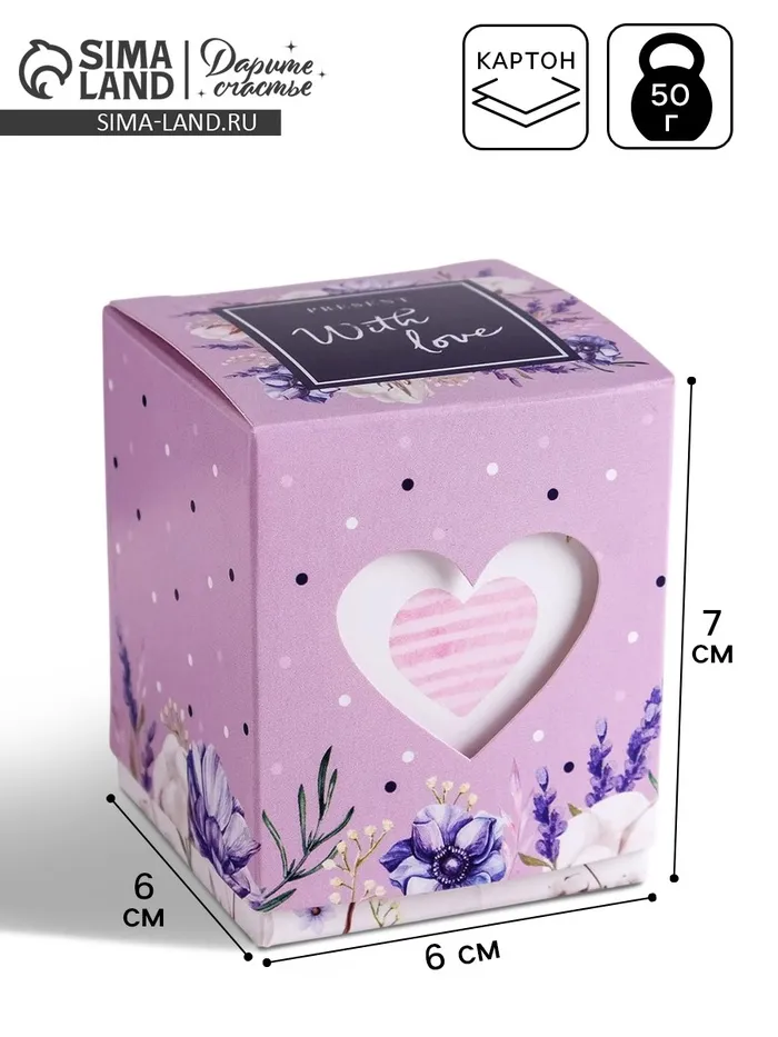 Коробка бонбоньерка, упаковка подарочная, «С любовью и нежностью», 6 х 7 х 6 см — Характеристики