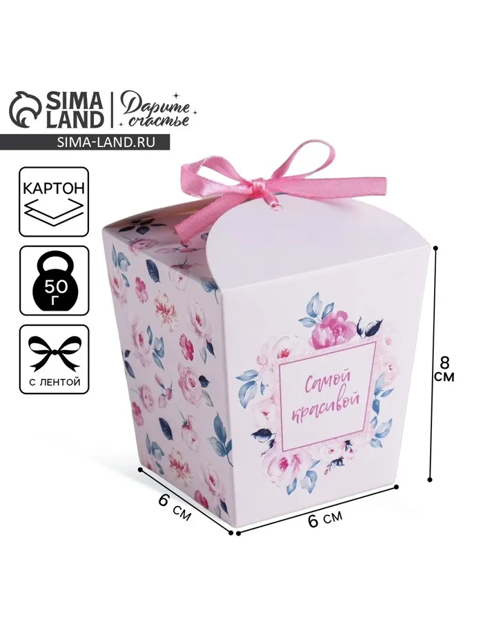 Коробка бонбоньерка, упаковка подарочная, «Самой красивой», 8 х 7.5 х 6 см см — Характеристики