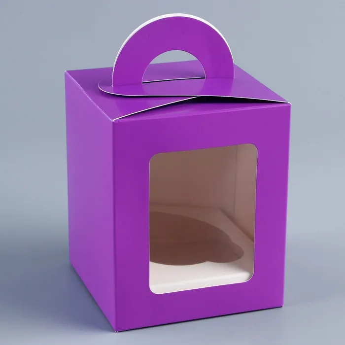 Коробка для 1 капкейк с окном, сиреневая, 9.2×9.2×11.1 см — Характеристики