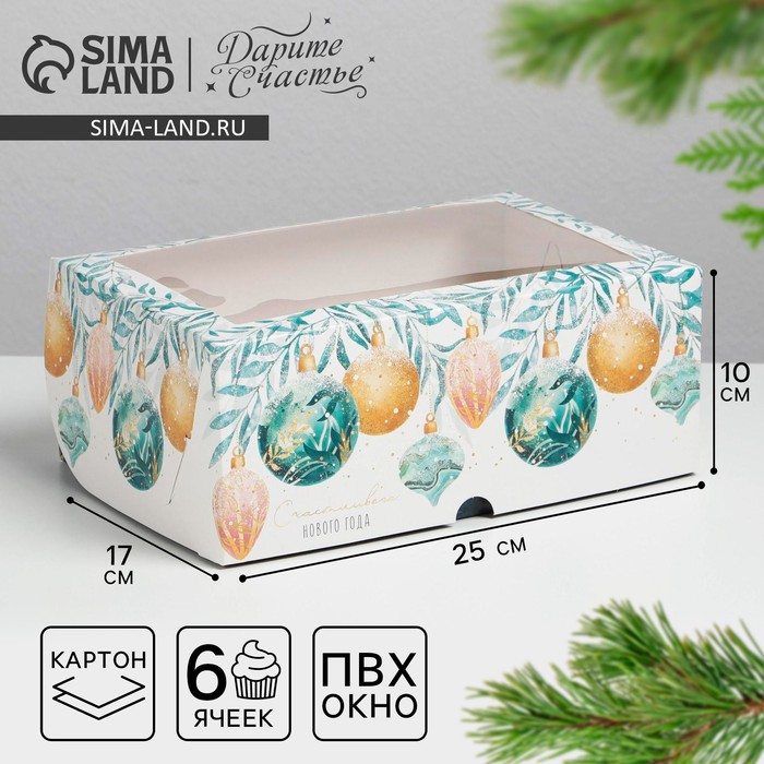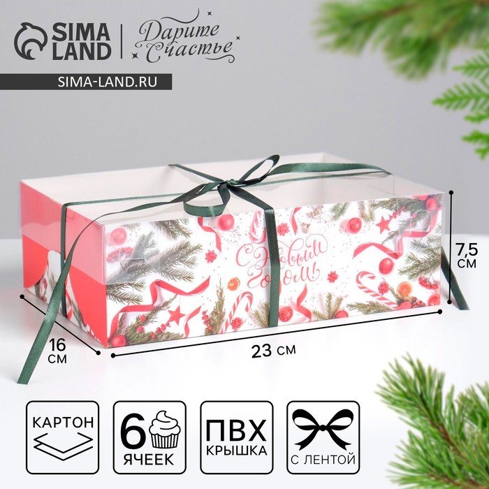 Прозрачное окошко на крышке (если предусмотрено) позволяет продемонстрировать яркие и красивые десерты, не открывая коробку. Компактные размеры и удобная конструкция делают упаковку удобной для транспортировки, а праздничное оформление превращает её в отличное дополнение к любому новогоднему подарку или столу.