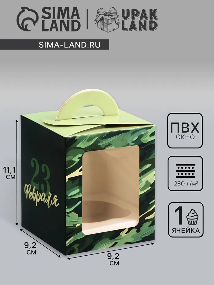 Коробка для 1 капкейка,«Камуфляж», 9.2×9.2×11.1 см — Характеристики
