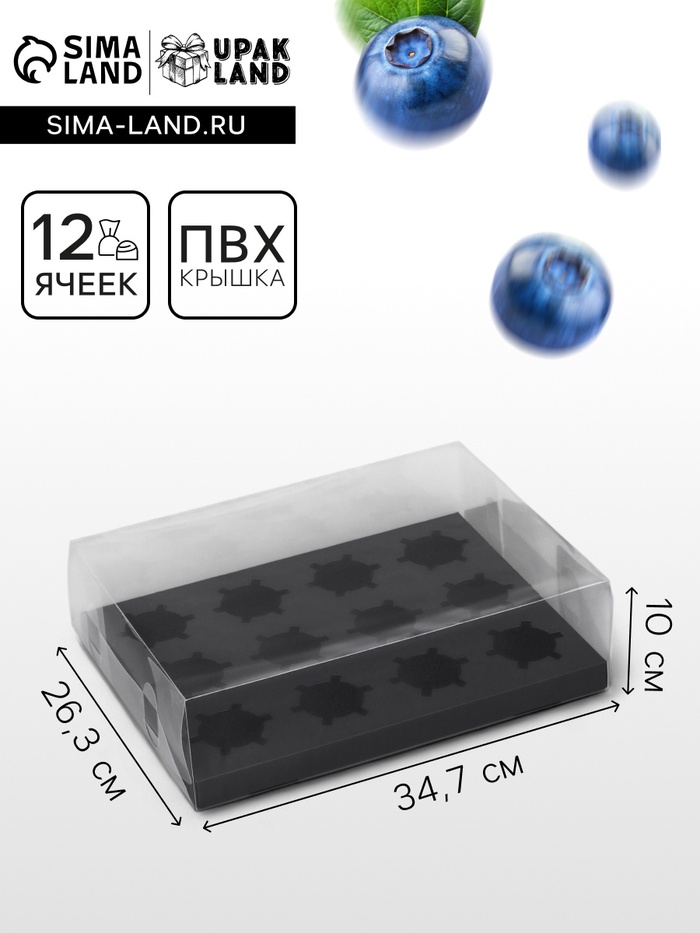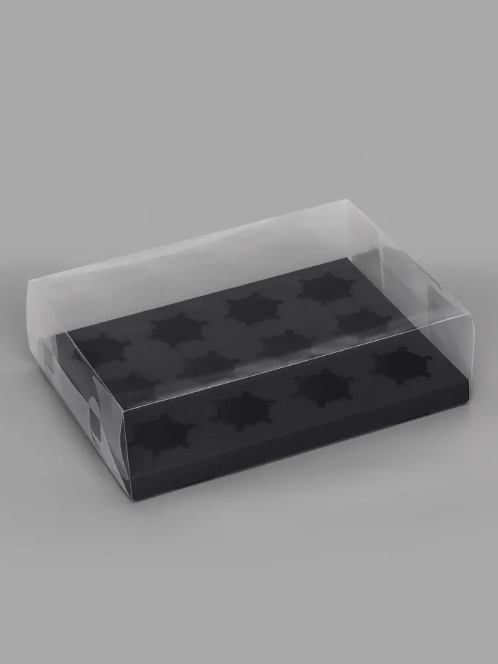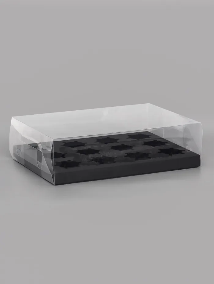 Коробка для 12 капкейков, с прозрачной крышкой, чёрная, 34.7×26.3×10 см — Характеристики