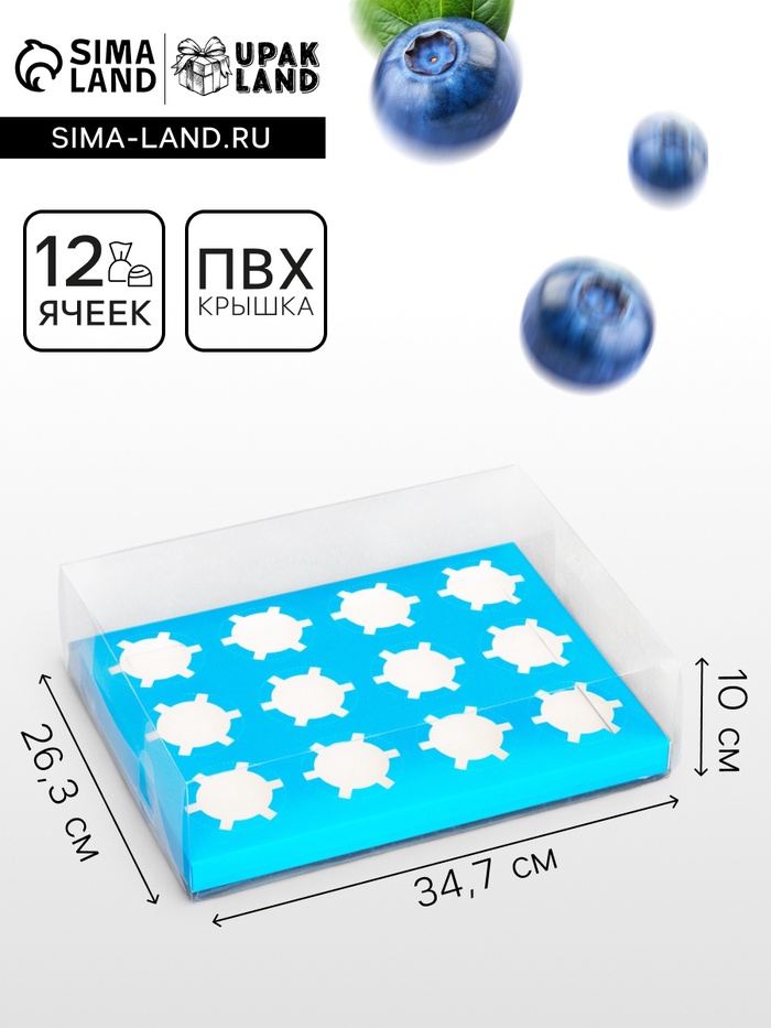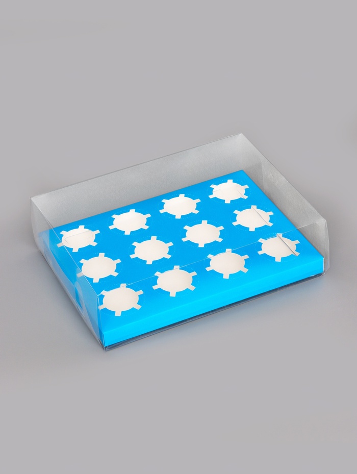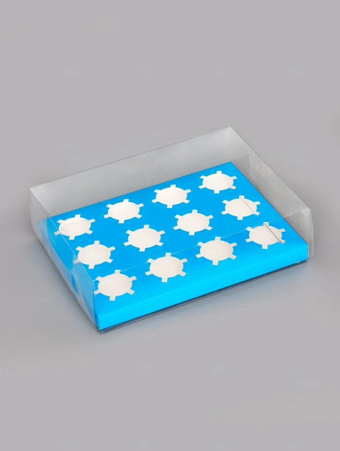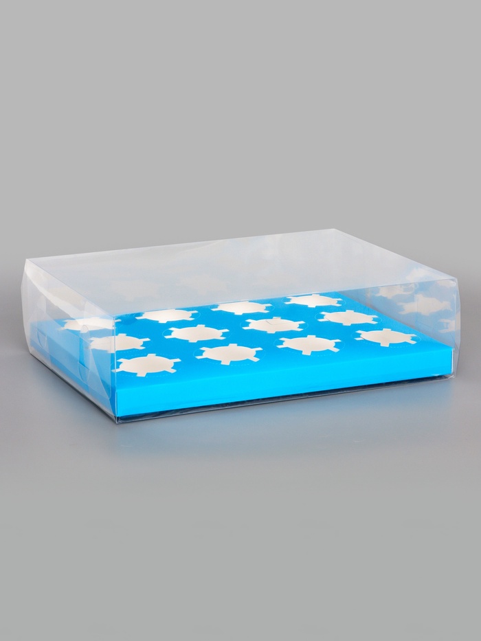 Коробка для 12 капкейков, с прозрачной крышкой, голубой, 34.7×26.3×10 см — Характеристики