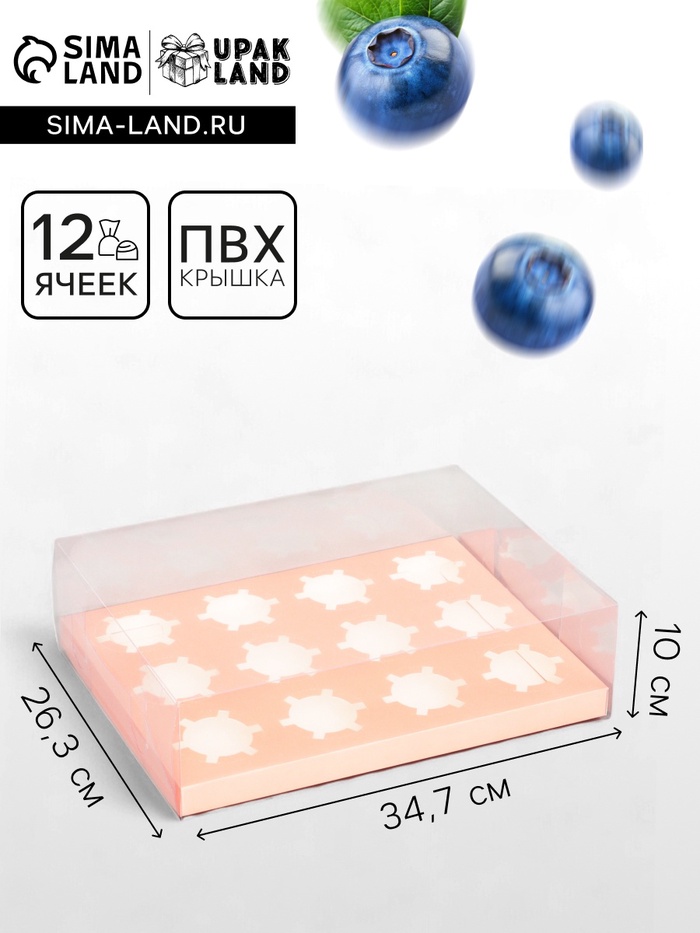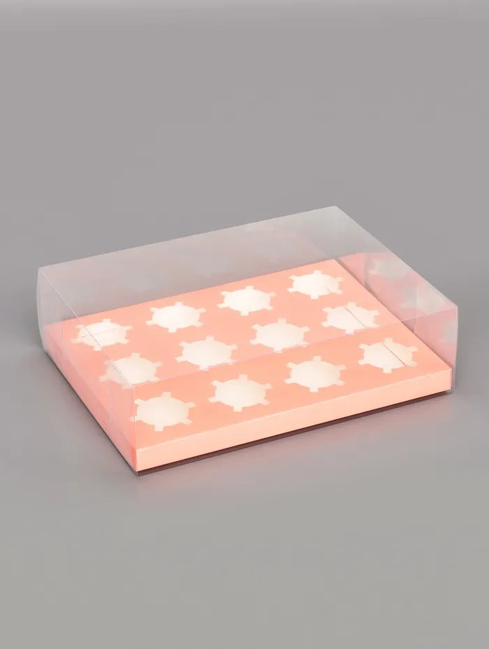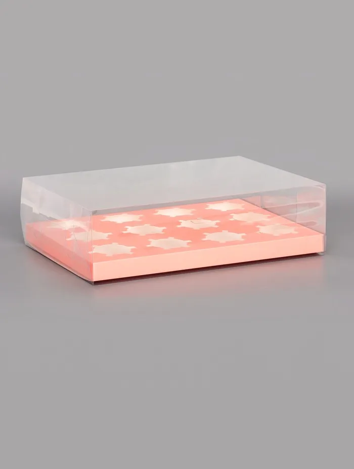 Коробка для 12 капкейков, с прозрачной крышкой, розовый 34.7×26.3×10 см — Характеристики