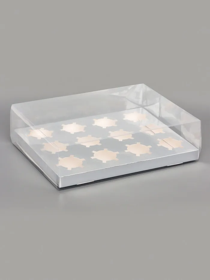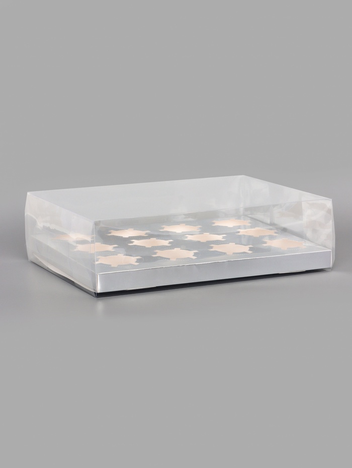 Коробка для 12 капкейков, с прозрачной крышкой, серебро, 34.7×26.3×10 см — Характеристики