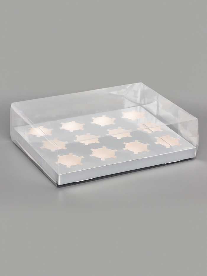 Упаковка для капкейков. Изготовлена из плотного картона и PVC. Используют для упаковки и транспортировки капкейков при доставке. Благодаря окошку можно рассмотреть товар внутри коробки, не открывая ее. Коробка имеет гладкую фактуру и текстуру, ее приятно держать в руках. При производстве применяется картон, соответствующий европейским стандартам качества. Упаковка не впитывает жир и устойчива к влаге, поэтому ее внешний вид не пострадает при хранении или перевозке.