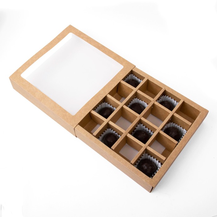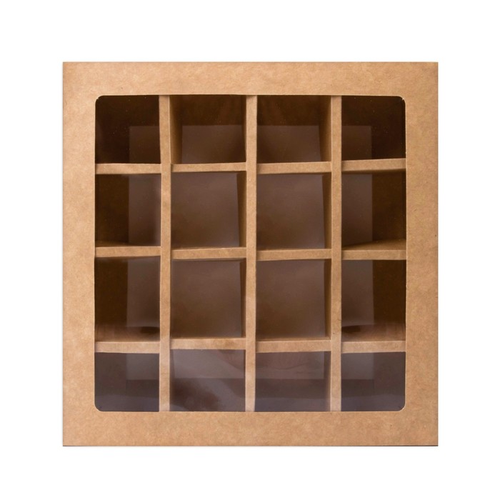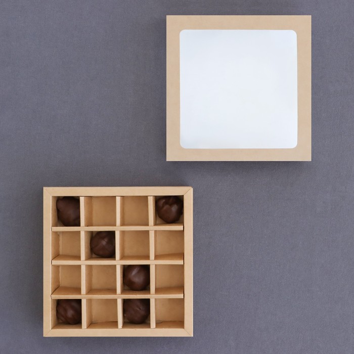 Коробка для 16 конфет, крафт 17.7×17.7×3.8 см — Характеристики