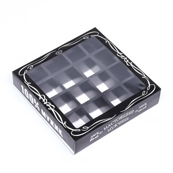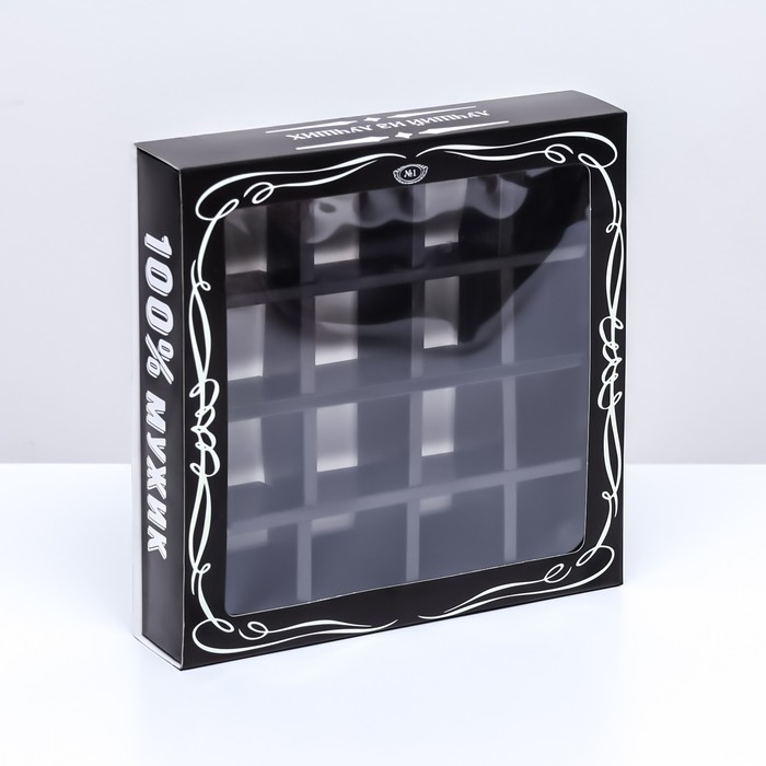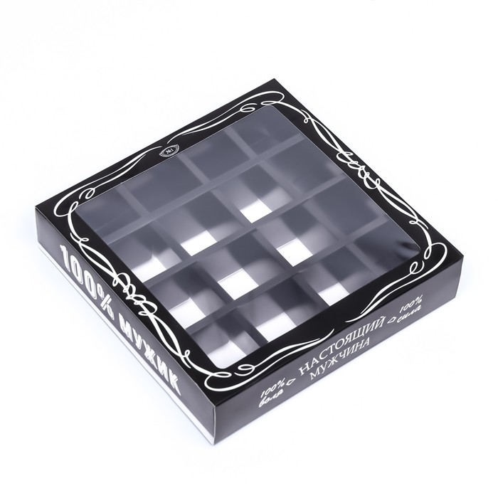 Коробка для 16 конфет, «Настоящий мужчина» 17.7×17.7×3.8 см — Характеристики