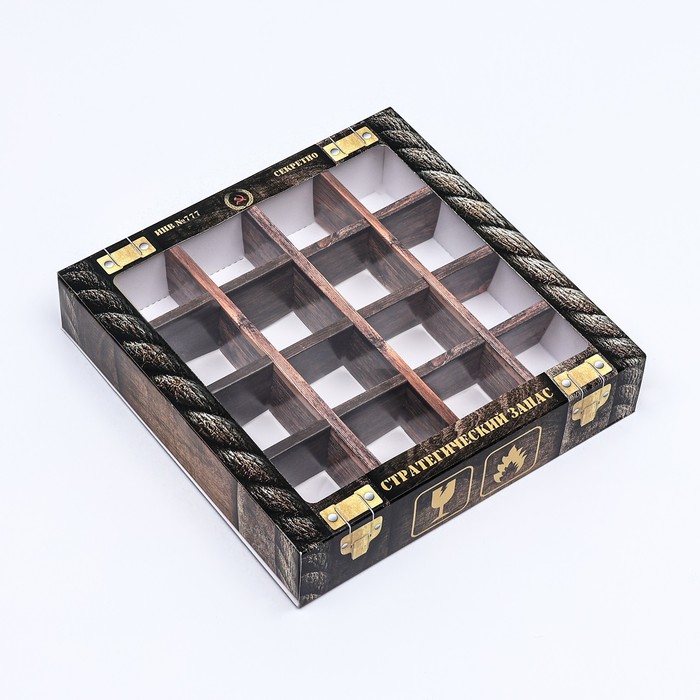 Коробка для 16 конфет, «Стратегический запас» 17.7×17.7×3.8 см — Характеристики
