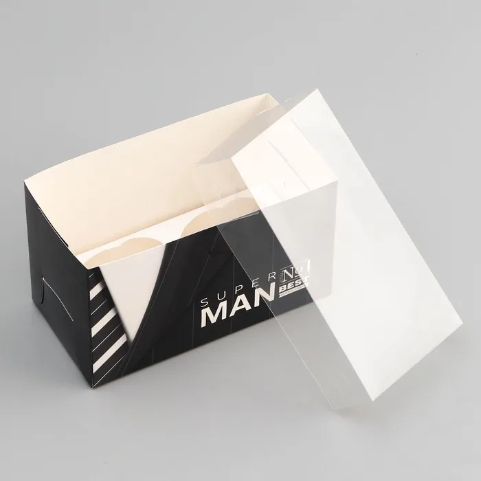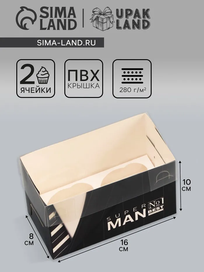 Коробка для 2 капкейка с прозрачной крышкой, «Мужская», 16×8×10 см — Характеристики