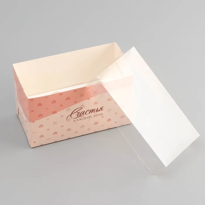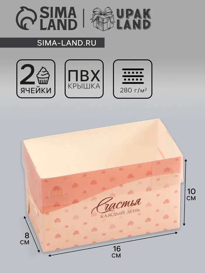 Коробка для 2 капкейка с прозрачной крышкой, «Сердечки», 16×8×10 см — Характеристики