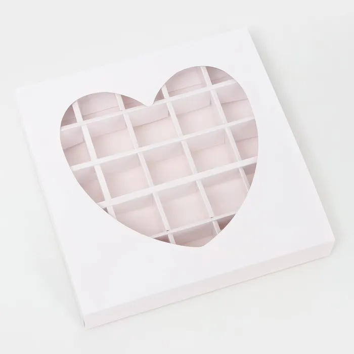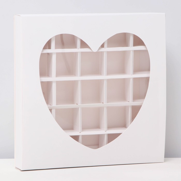 Коробка для 25 конфет, белое сердце, 22×22×3.5 см