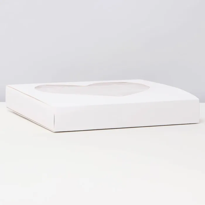 Коробка имеет форму сердца, что делает ее уникальной и привлекательной для покупателей. Она также может быть использована для создания красивой и привлекательной упаковки для продажи выпечки в магазинах или на мероприятиях.