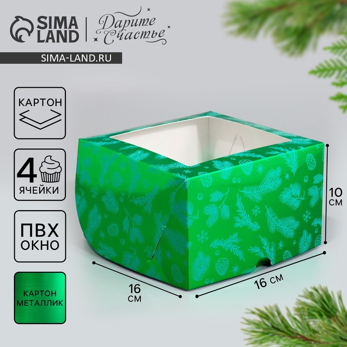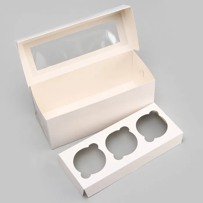 Коробка для 3 капкейка с окном, целлюлоза, 25 х 10 х 10 см — Характеристики