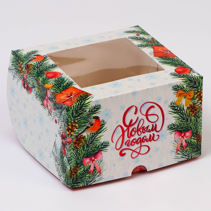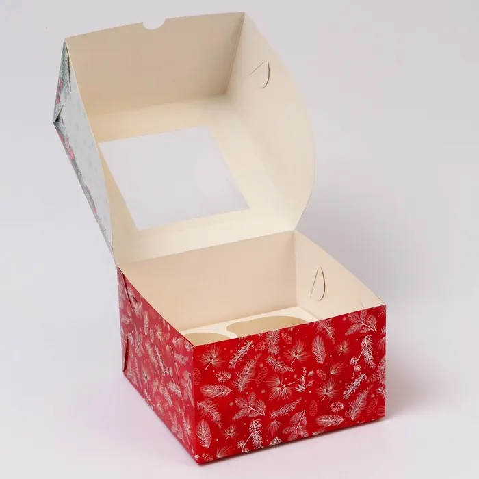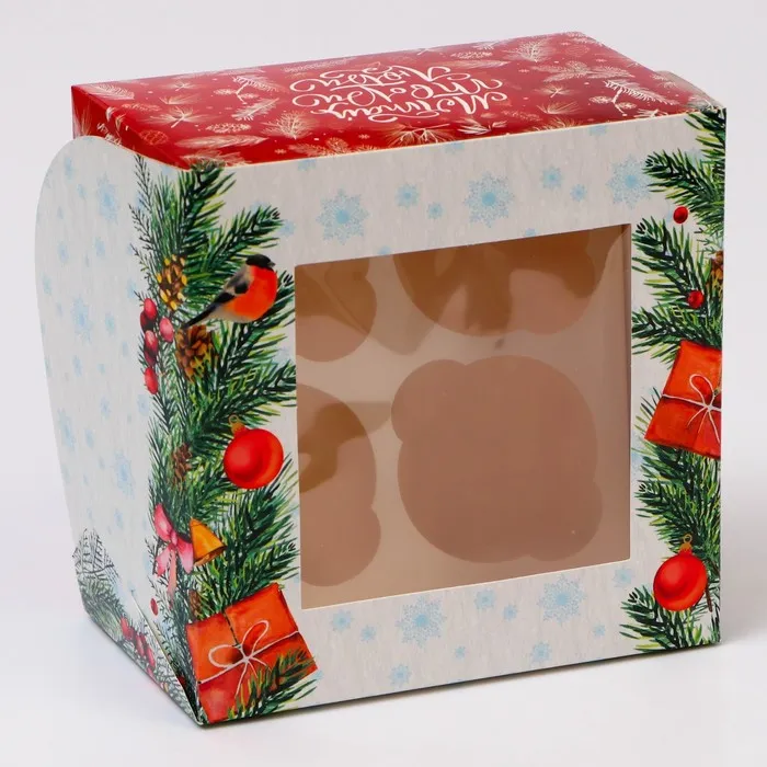 Прозрачное окошко на крышке (если предусмотрено) позволяет продемонстрировать яркие и красивые десерты, не открывая коробку. Компактные размеры и удобная конструкция делают упаковку удобной для транспортировки, а праздничное оформление превращает её в отличное дополнение к любому новогоднему подарку или столу.