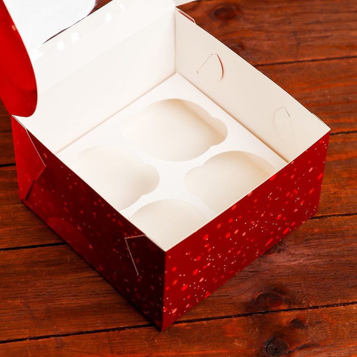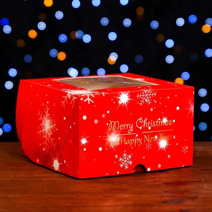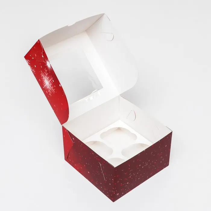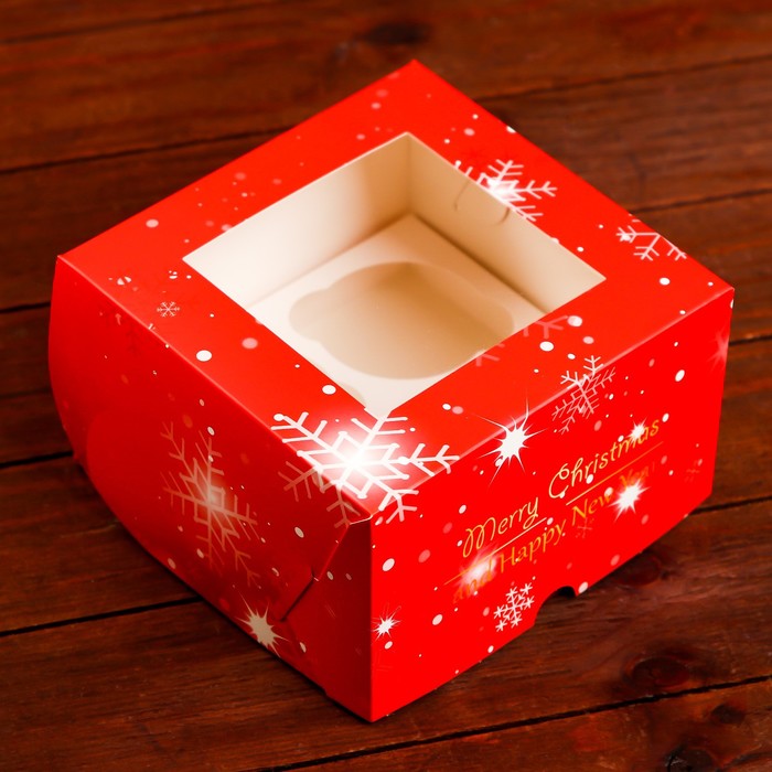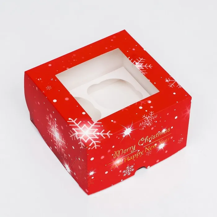 Коробка для 4 капкейка с окном «С Праздником!», 16×16×10 см, упаковка, Новый год — Характеристики