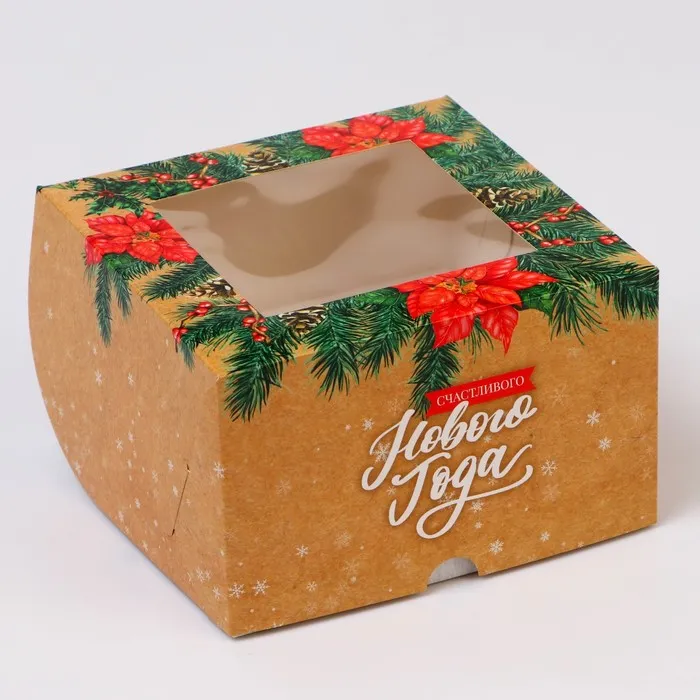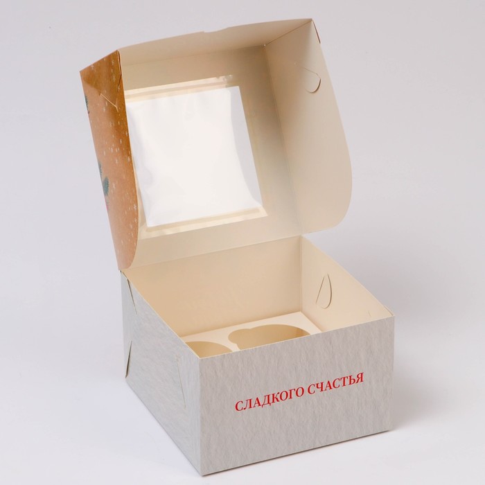 Коробка для 4 капкейка с окном, «Сладкого Нового года!», 16×16×10 см — Характеристики