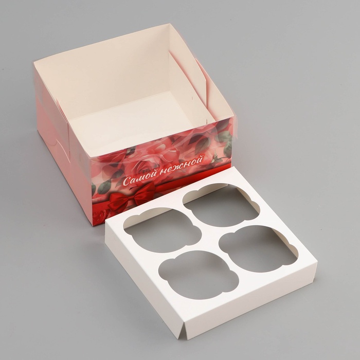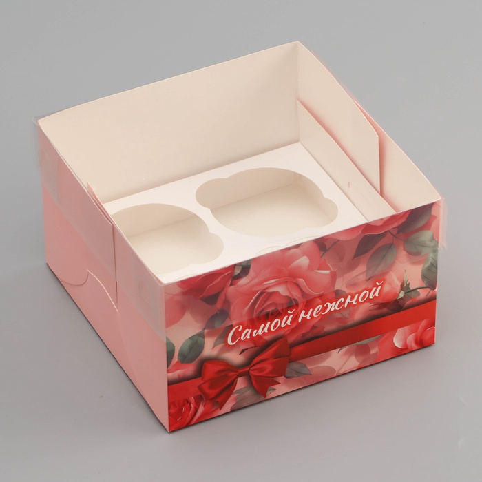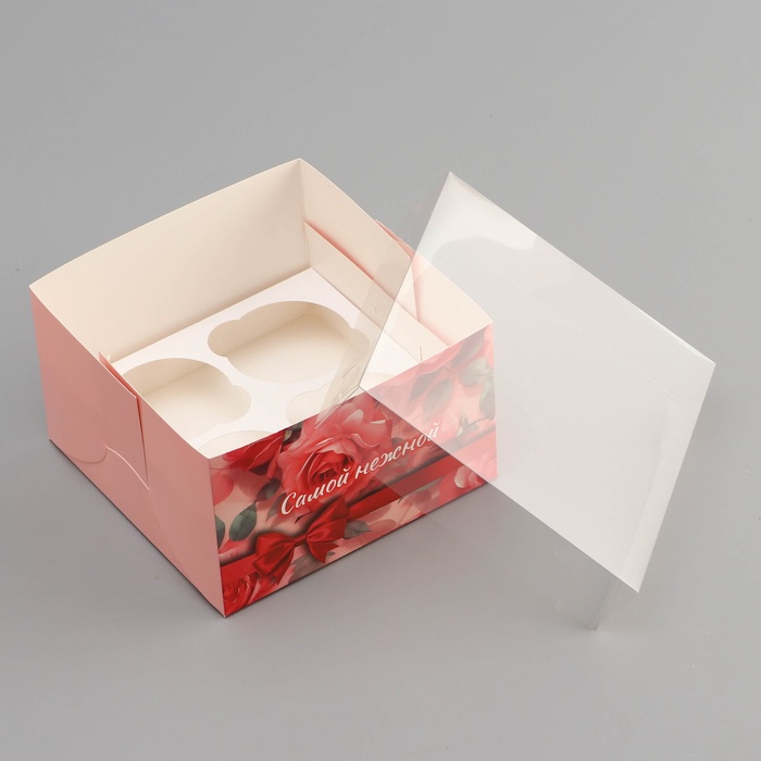 Коробка для 4 капкейка с прозрачной крышкой, «Самой нежной», 16×16×10 см