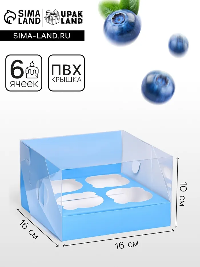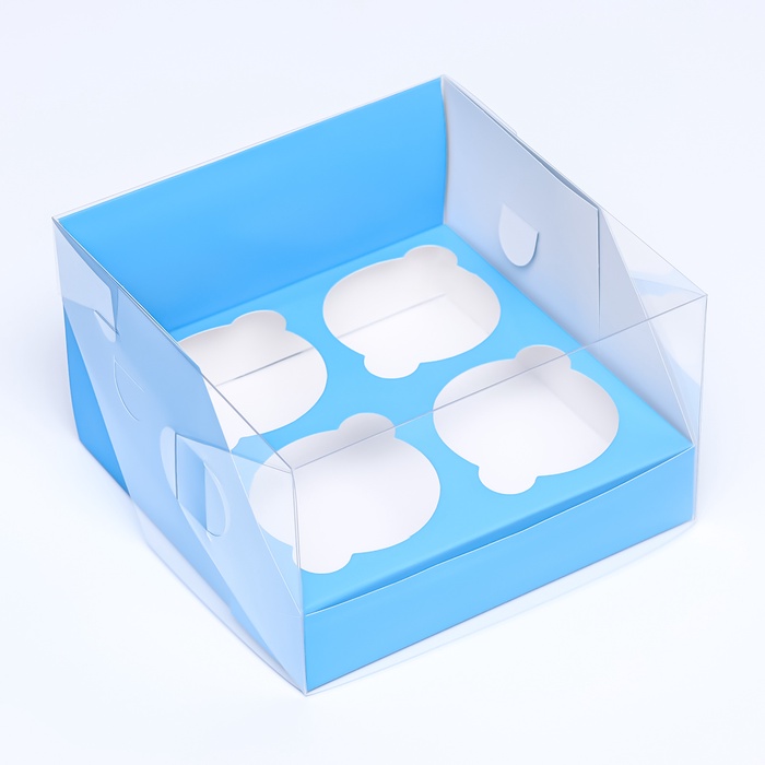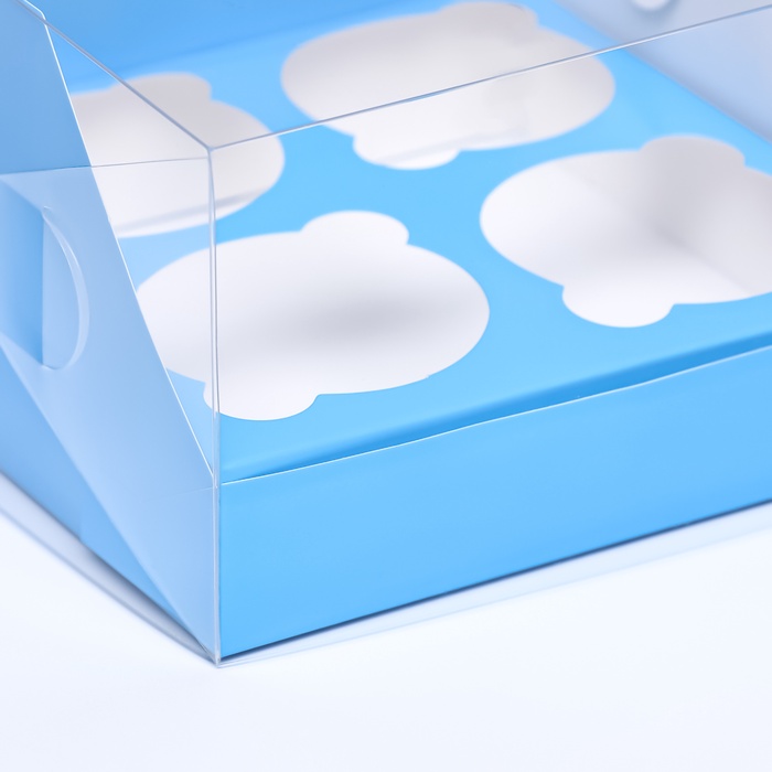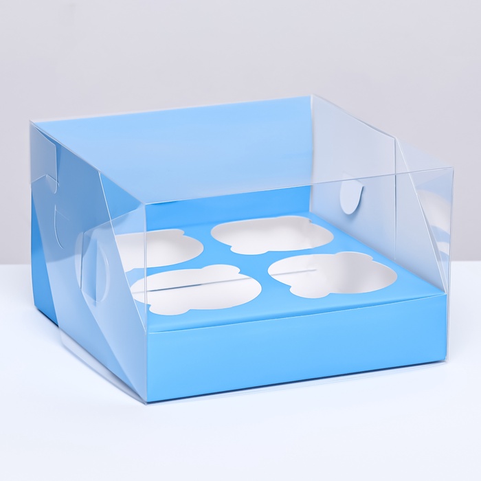 Коробка для 4 капкейков 16×16×10 см, голубая — Характеристики