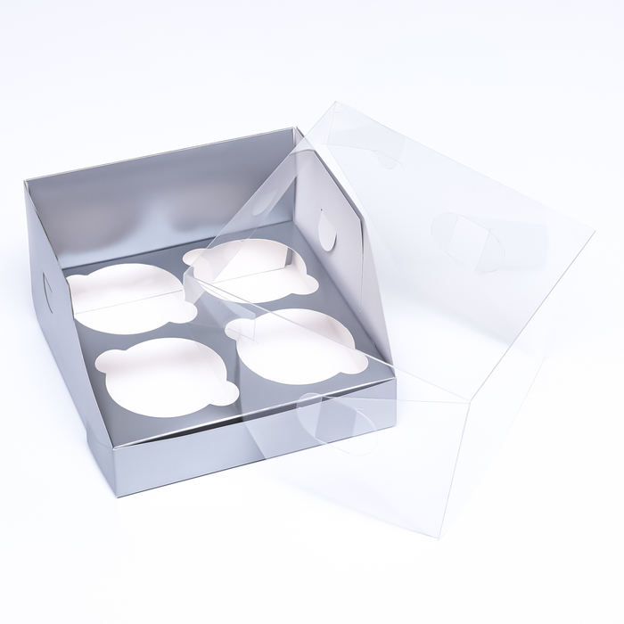 Коробка для 4 капкейков 16×16×10 см, серебро — Характеристики