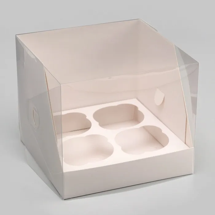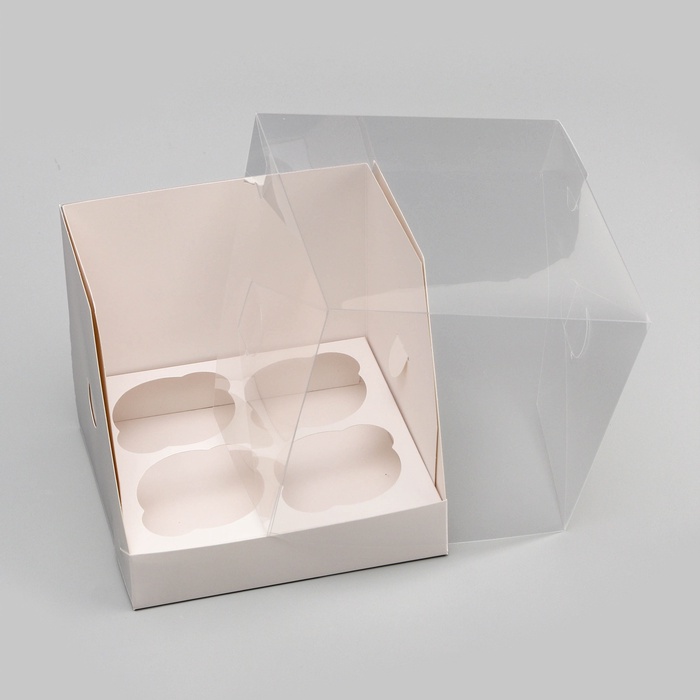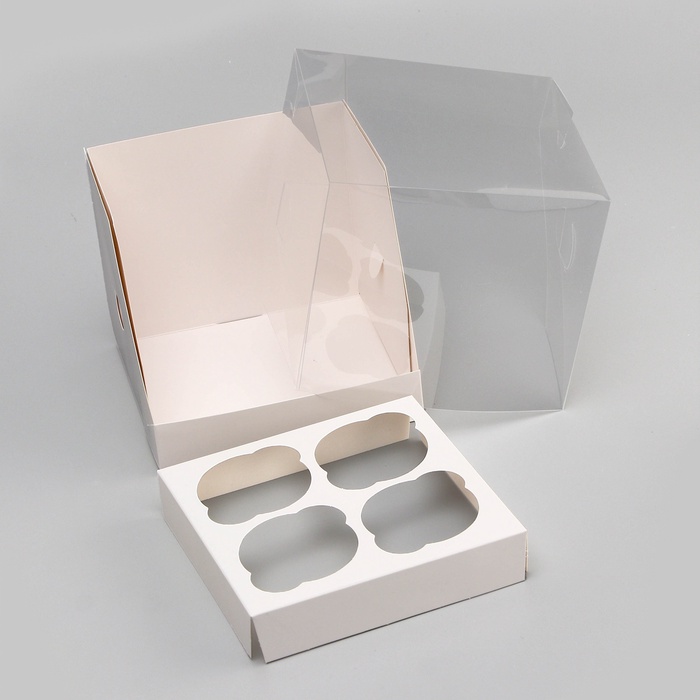 Коробка для 4 капкейков, белая 16×16×14 см — Характеристики