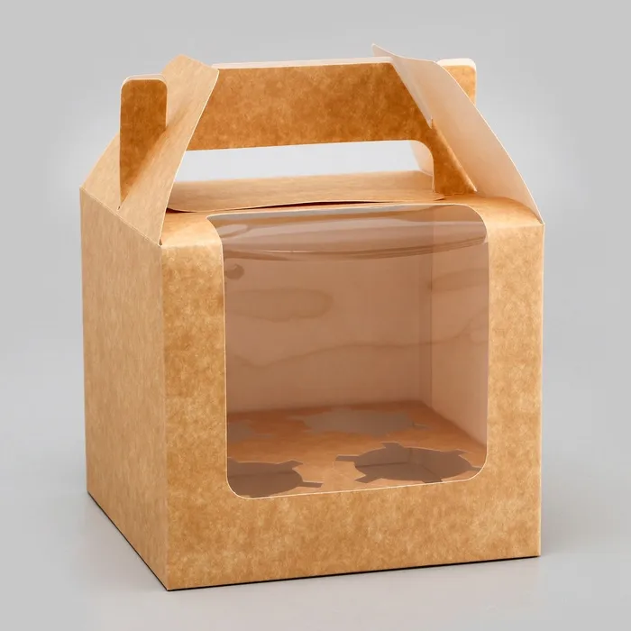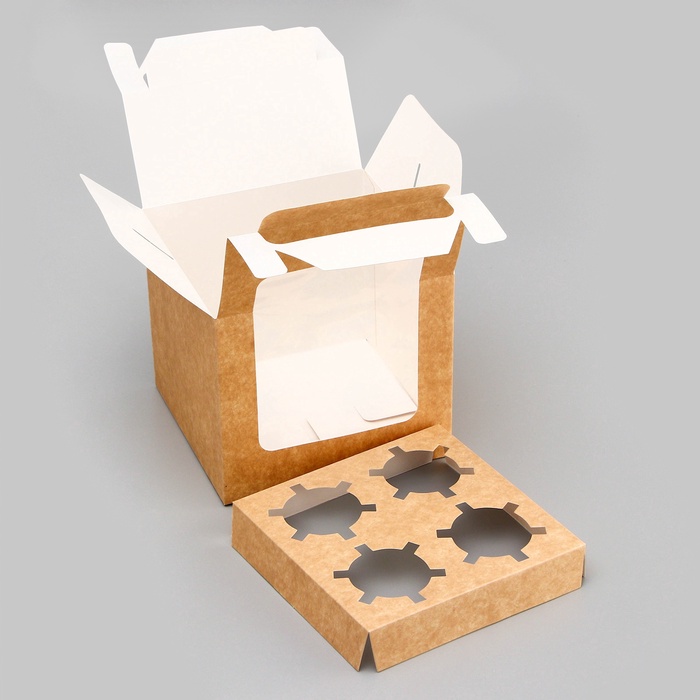Коробка для 4 капкейков, крафт 16×16×14 см — Характеристики