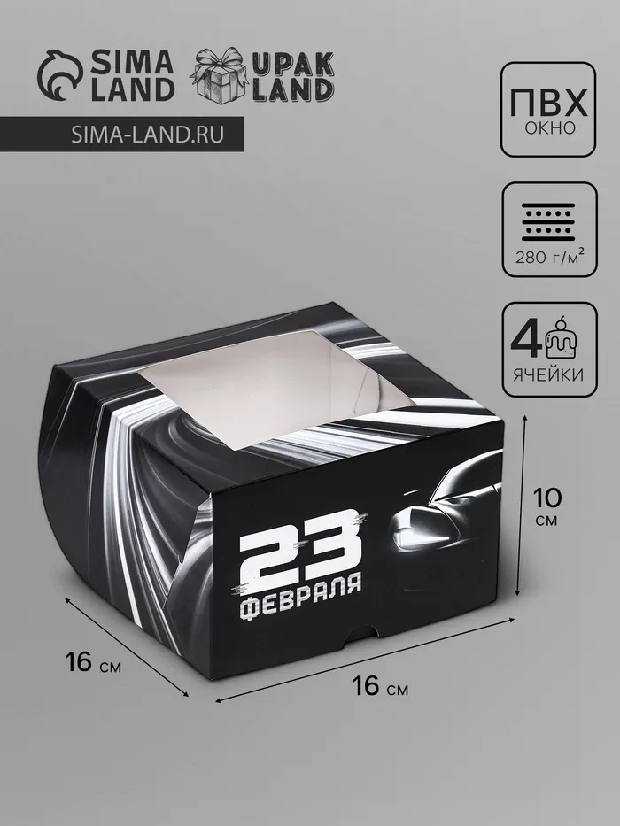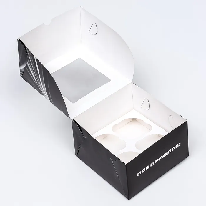 Коробка для 4 капкейков с окном, «Мужской», 16×16×10 см — Характеристики