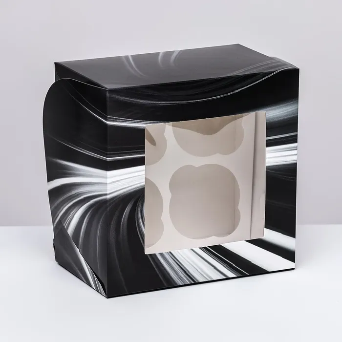 Коробка подойдет для капкейков, маффинов, пирожных или другого десерта.