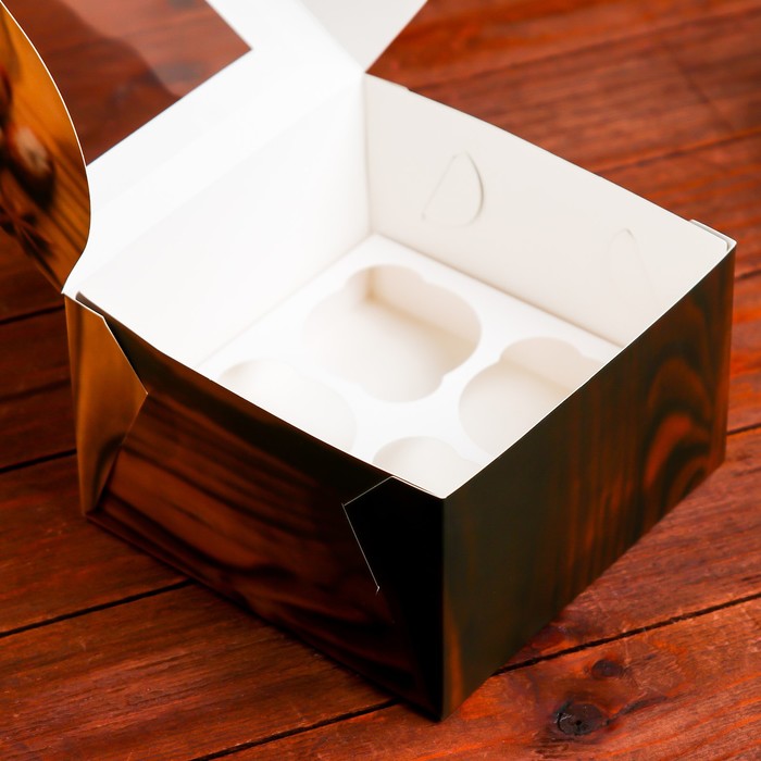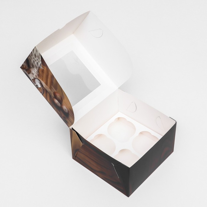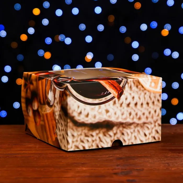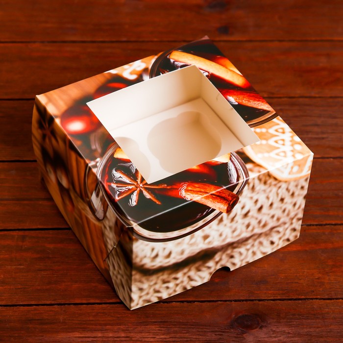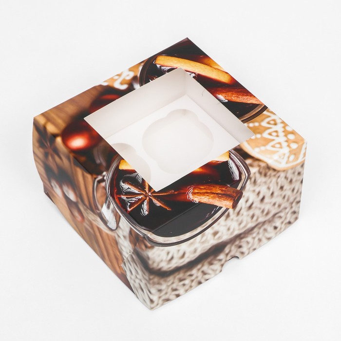 Коробка для 4 капкейков с окном подарочная новогодняя упаковка, «Глинтвейн», 16×16×10 см — Характеристики