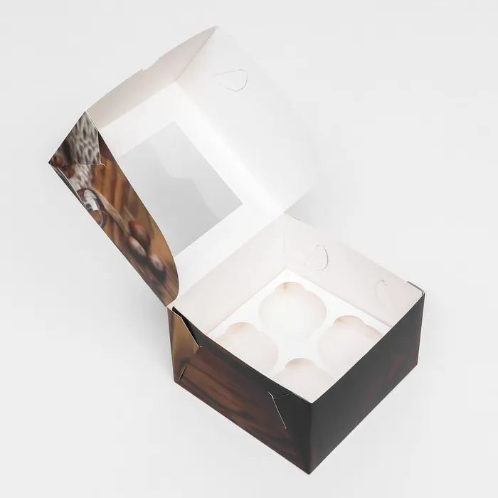 Упаковка для капкейков - это специализированная упаковка, предназначенная для безопасной и эстетичной транспортировки и представления капкейков. Эта упаковка обычно имеет индивидуальные ячейки для каждого капкейка, сохраняя их форму и украшения, что делает ее идеальной для подарков или продажи на вынос.