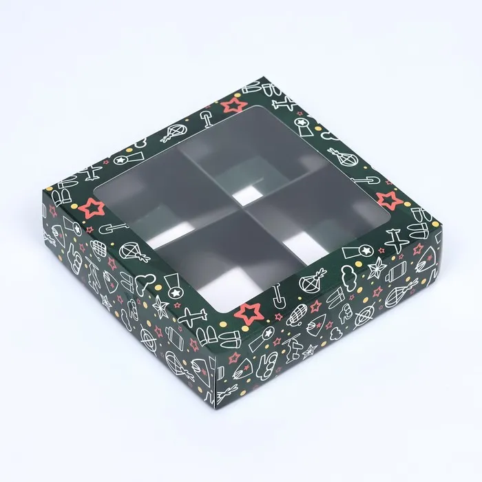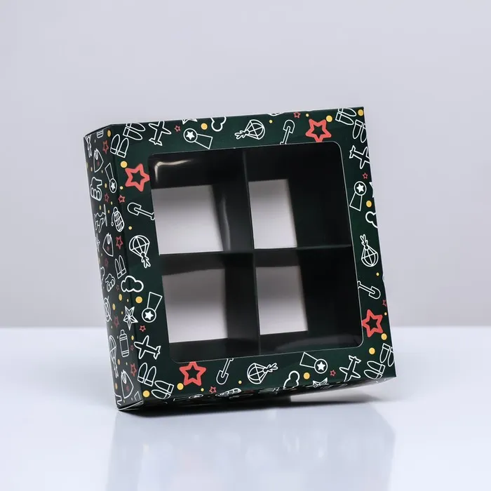Коробка для 4 конфеты, «23 Февраля» 12.6×12.6×3.5 см — Характеристики