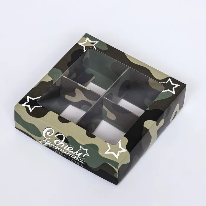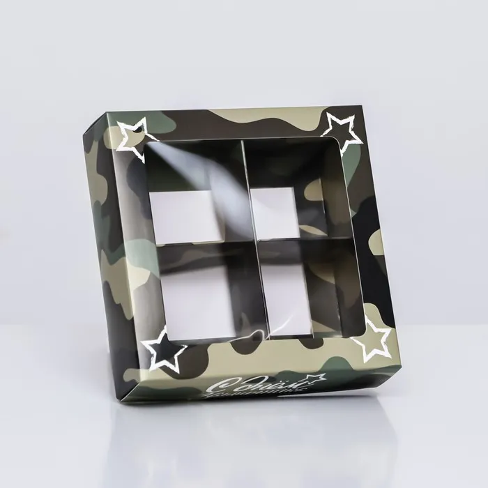 Коробка для 4 конфеты, «Камуфляж» 12.6×12.6×3.5 см — Характеристики