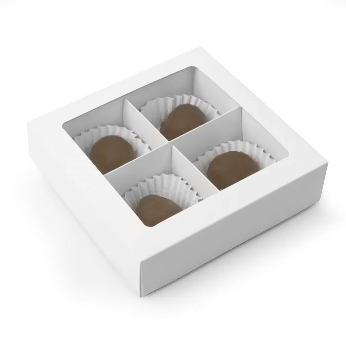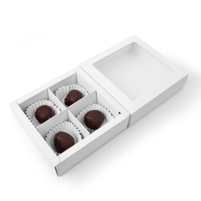Коробка для 4 конфеты, с окном, целлюлоза белая,12.5×12.5×3.5 см — Характеристики