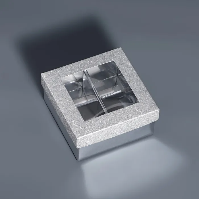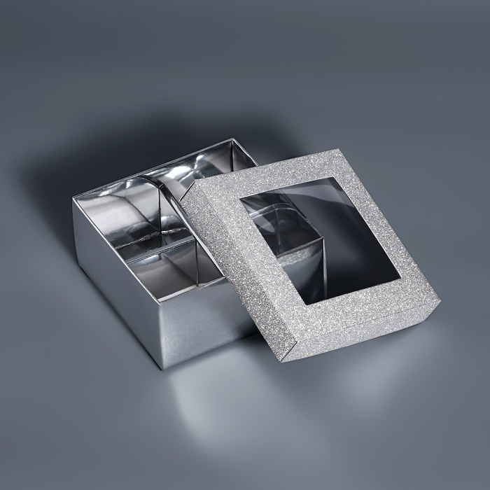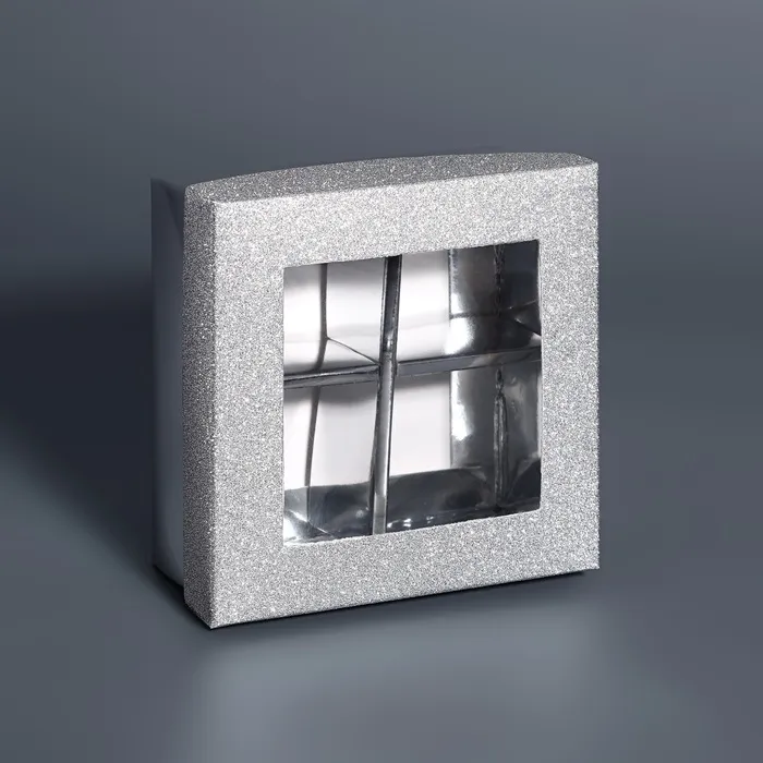 Коробка для 4 конфеты серебро глиттер, 8.5×8.5×4 см — Характеристики