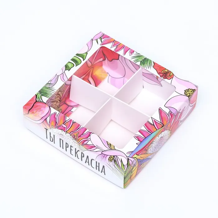 Коробка для 4 конфеты, «Ты лучшая» 12.6×12.6×3.5 см