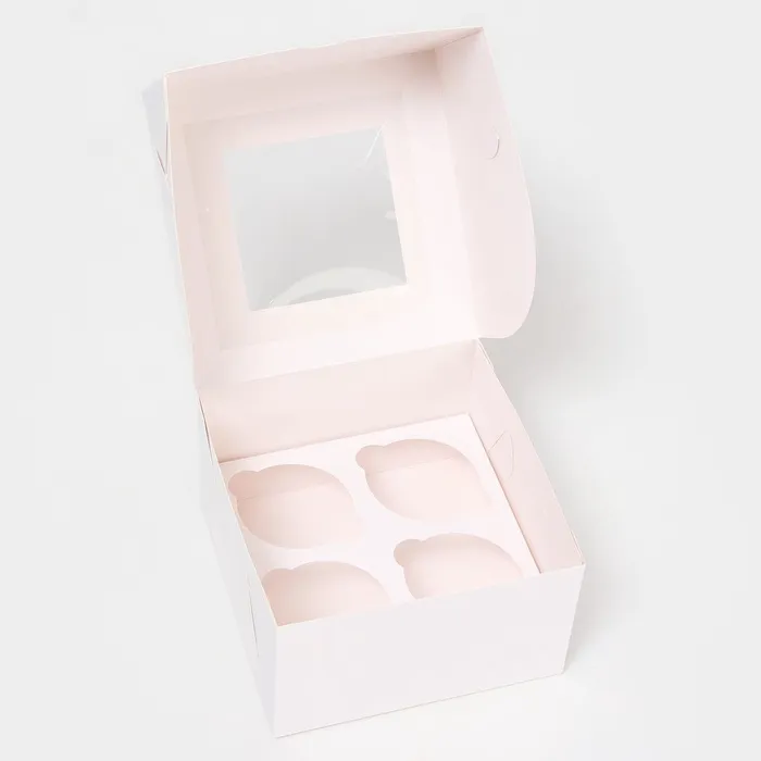 Упаковка предназначена для упаковки и транспортировки 4 мини-капкейков. Она имеет достаточную вместимость для того, чтобы защитить продукты от повреждений и сохранить их свежесть.