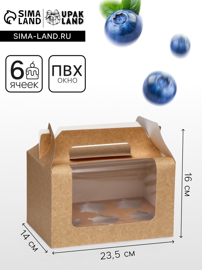 Коробка для 6 капкейков, крафт 23.5×16×14 см — Характеристики