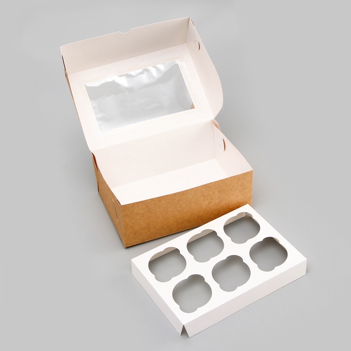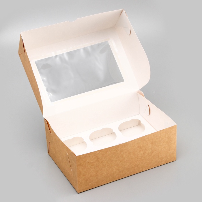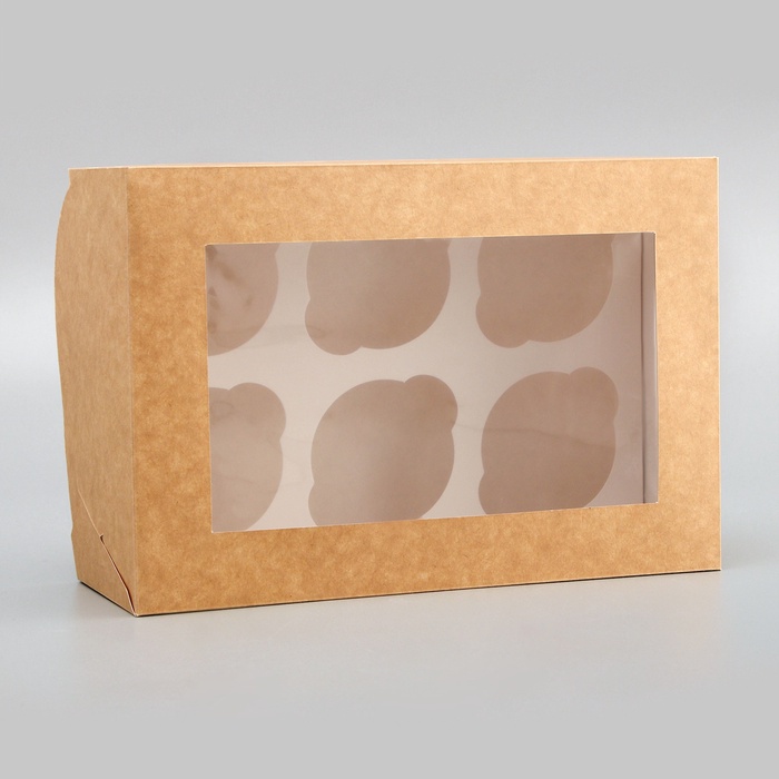 Коробка для 6 капкейков с окном, крафт, 25×17×10 см — Характеристики