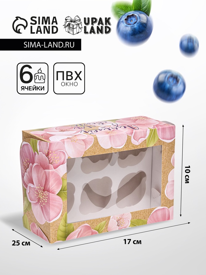 Коробка для 6 капкейков с окном, «Лучшей для свете», 25×17×10 см — Характеристики