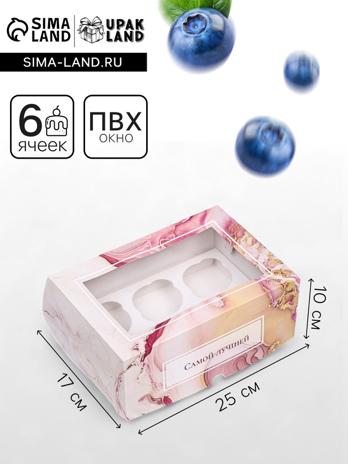 Коробка для 6 капкейков с окном, «Лучших моментов», 25×17×10 см — Характеристики