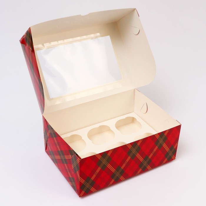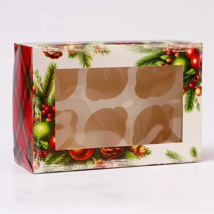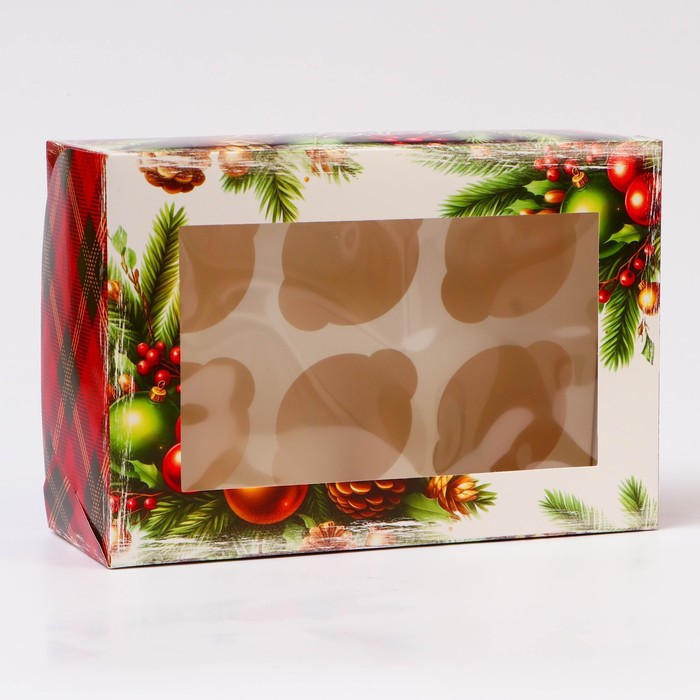 Коробка для 6 капкейков с окном, «Новогодняя с шишками», 25×17×10 см — Характеристики